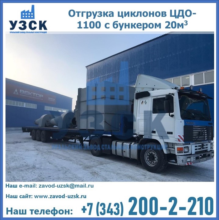 Циклоны ЦДО-1100 с бункером на 20 кубов были отгружены в декабре 2018 года в г. Новосибирск Рубцовск.