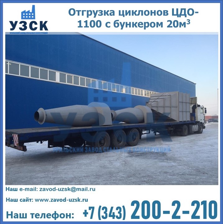 Циклоны ЦДО-1100 с бункером изготовлены и отправлены для предприятия АТТ в г. Новосибирске.