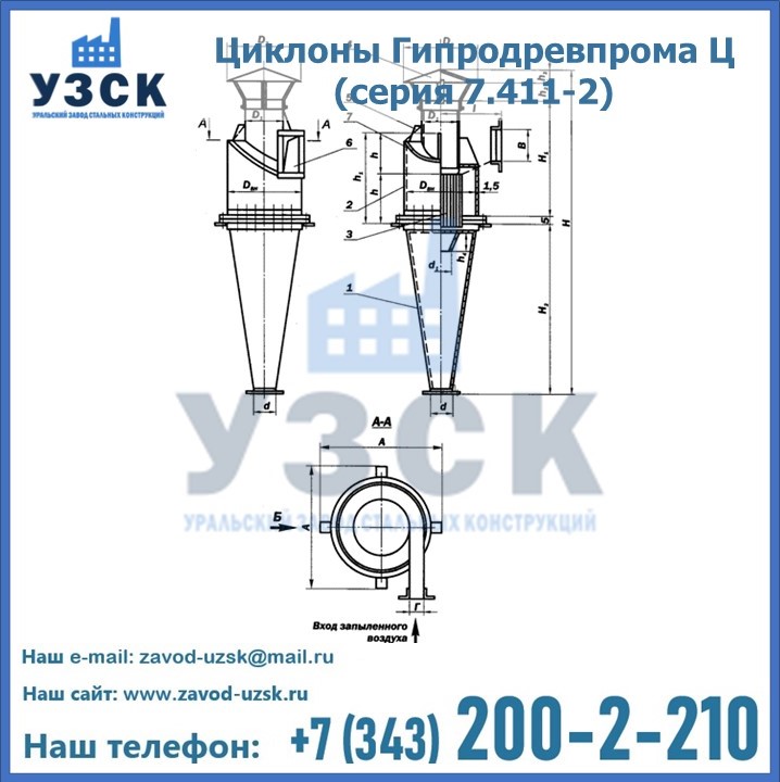Циклоны Гипродревпрома Ц (серия 7.411-2) высокого качества можно купить в компании «УЗСК» в Рубцовске. Наши специалисты предоставят всю необходимую информацию информацию и помогут с выбором модели циклона. Подробные технические характеристики, конструкцию, параметры, ассортимент и стоимость продукции можно также найти на сайте УЗСК.