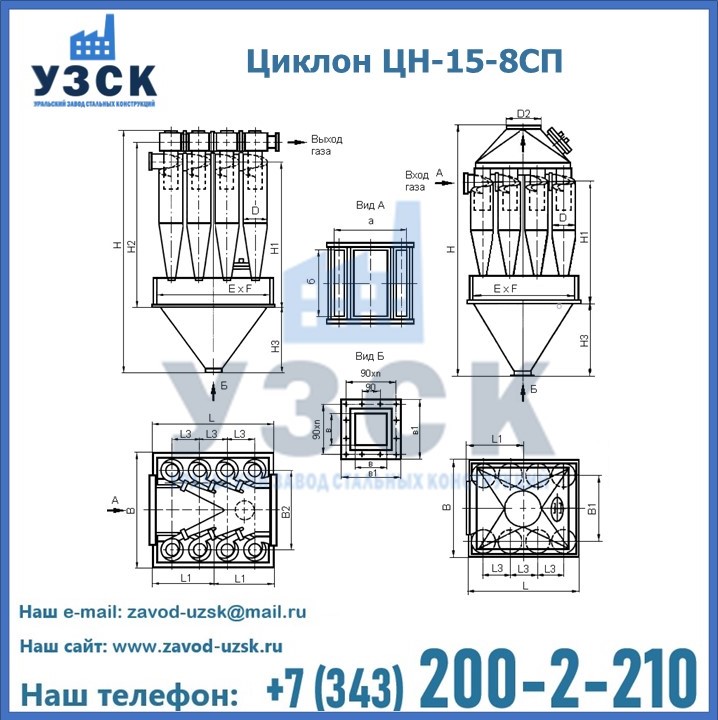 | ЦИКЛОН ЦН-15-500х8СП | 2150 | 1850 | 1188 | 340 | 1230 | 580 | 300 | 440 | 3320 |
