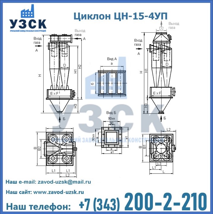 Завод «УЗСК» в Рубцовске предлагает большой выбор циклонов ЦН-15-900×4УП и прочих устройств, полностью укомплектованных и готовых к эксплуатации. Мы гарантируем соответствие оборудования всем требованиям ГОСТ и ТУ, износостойкость и высокую производительность предлагаемого оборудования. Уральский Завод Стальных Конструкций изготавливает и продает надежное, эффективное и производительное оборудование, имеющее длительную гарантию и большой эксплуатационный ресурс. Если требуется изготовить циклон нестандартных размеров, то такой вариант выполнения заказа тоже предусмотрен, так как предприятие имеет собственные производственные площади и надежных поставщиков. На все поставляемое или производимое оборудование имеются чертежи и прочая техническая документация. Заказать и купить циклоны или прочее оборудование высокого качества и по доступной цене можно через наш сайт или по указанному в разделе «Контакты» телефону.