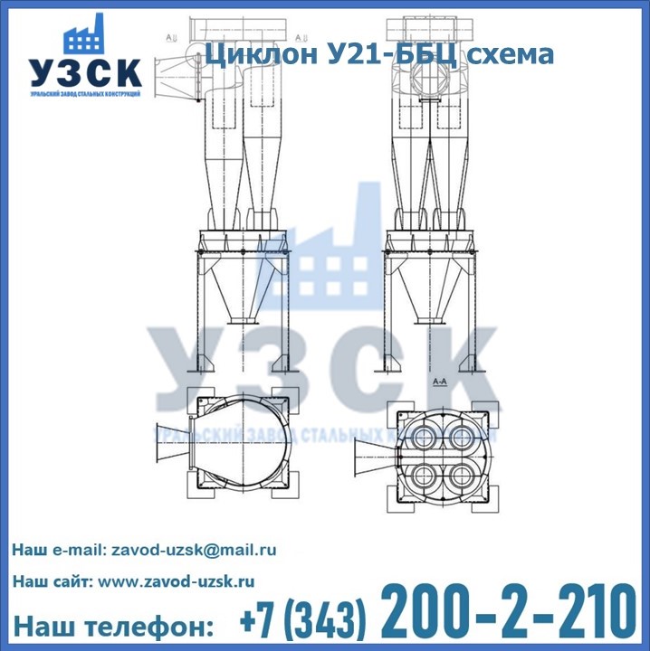 Устройство и особенности конструкции циклона пылеуловителя У21-ББЦ