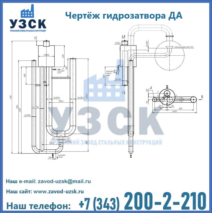 Если вы планируете купить, то или иное оборудование, например, гидрозатворы ДА, то рекомендуем заказать данный товар на сайте УЗСК. Мы производим и реализуем продукцию высокого качества по приемлемой цене. Специалисты Уральского Завода Стальных Конструкций проконсультируют вас по всем вопросам, помогут сделать выбор и оформить заказ без лишних временных затрат. Мы гарантируем соответствие нашей продукции всем требованиям ГОСТ и ТУ, а также износостойкость и высокую производительность предлагаемого оборудования. Если требуется произвести изделие нестандартных размеров, то такой вариант выполнения заказа тоже предусмотрен, так как предприятие сотрудничает с надежными поставщиками, а также имеет собственные производственные площади. На все поставляемые или производимые компанией «УЗСК» изделия имеются чертежи и прочая рабочая документация. Постоянным заказчикам мы предлагаем особые условия платежа и систему партнерских скидок. Заказать и купить гидрозатворы высокого качества и по доступной цене можно через наш сайт или по указанному в разделе «Контакты» телефону.